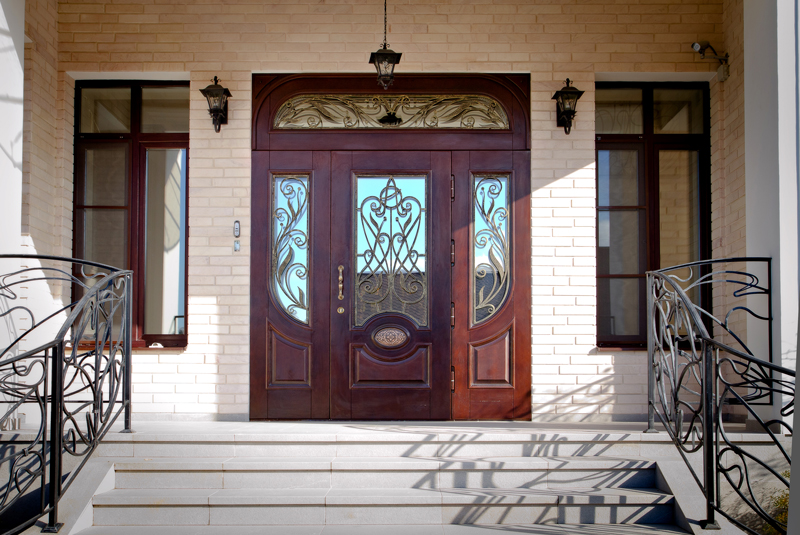 Различные декоративные элементы в виде кованых элементов, резных накладок, филенок украшают полотно и придают ему вид художественного изделия ручной работы.