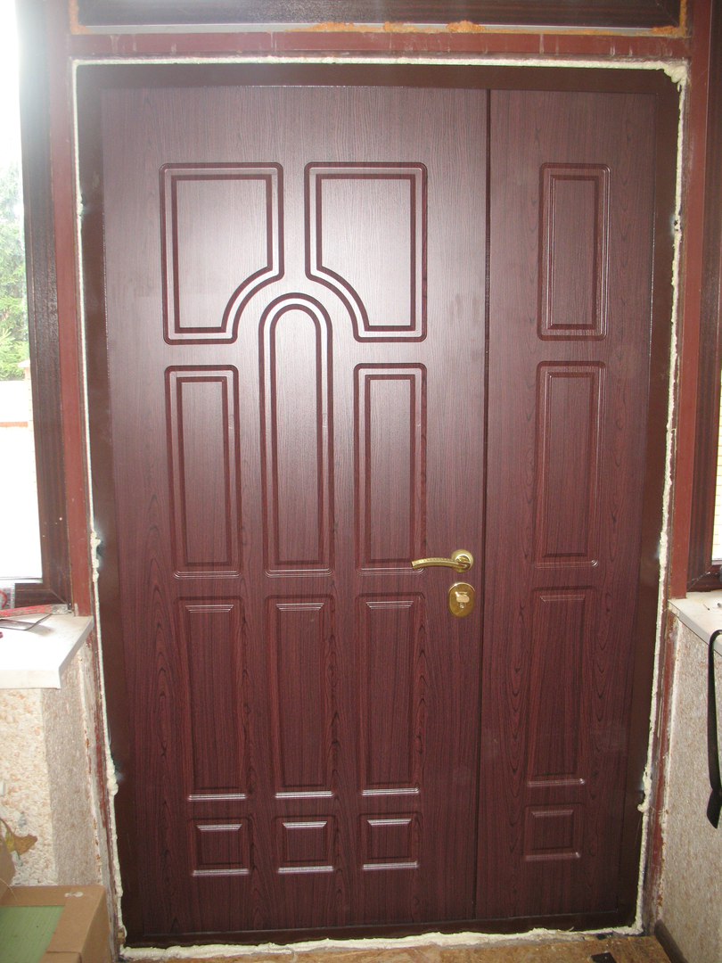 Наружная поверхность окрашивается порошковым составом способом напыления в любой цвет, по желанию заказчика. Также для отделки используются ламинат, экокожа, винорит и другие декоративные материалы. Железный лист толщиной от 2,2 мм обеспечивает требуемую жесткость конструкции и взломостойкость.